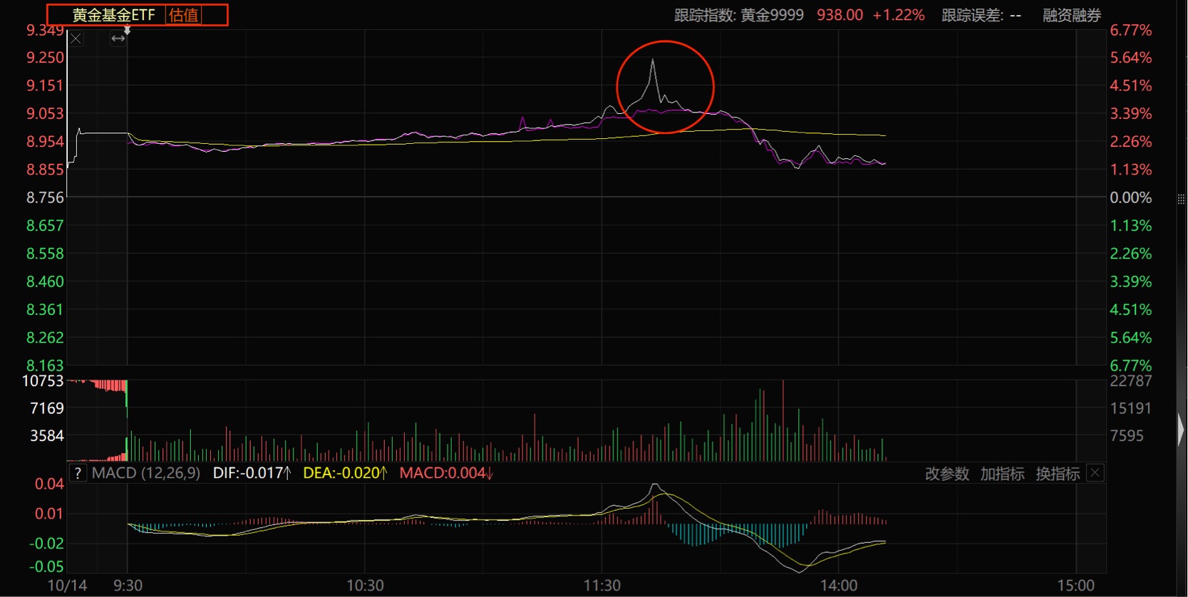 今天盘中$国泰黄金ETF$ 出现了个很诡异的迹象,就是下午开盘后溢价率迅速拉升