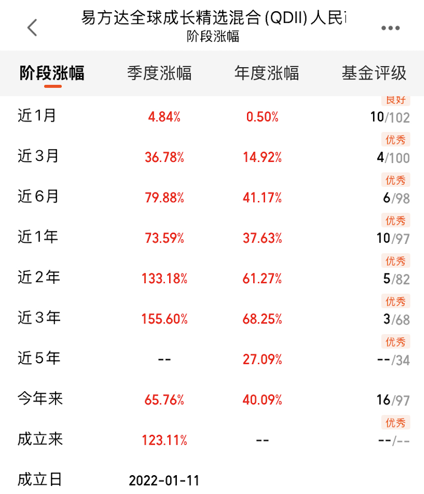 $易方达全球成长精选混合(QDII)人民币C(OTCFUND|012922)$