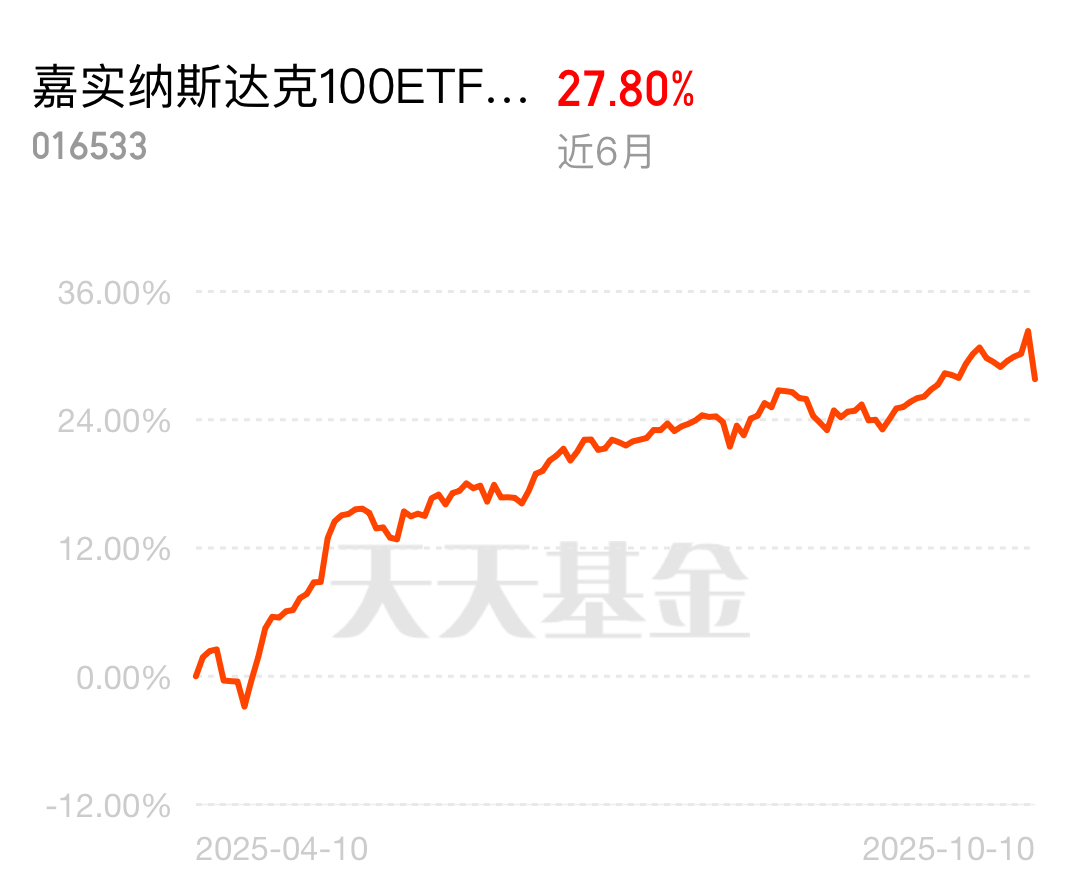 我在#全球市场深夜暴跌!纳指重挫超3%# 选择了“暂时观望” 隔夜纳指100涨幅2.1%,今天净值更新纳斯达克大概率吃肉,美股回调加仓很合适,昨天及时跟上的都又可以吃肉了,现在大多数都额度紧张,很多都限额几百,这个$嘉实纳斯达克100ETF发起联接(QDII)C人民币$ 额度还算充足,单日可以入手5000,等待反弹吃肉,美股科技还是可以的!