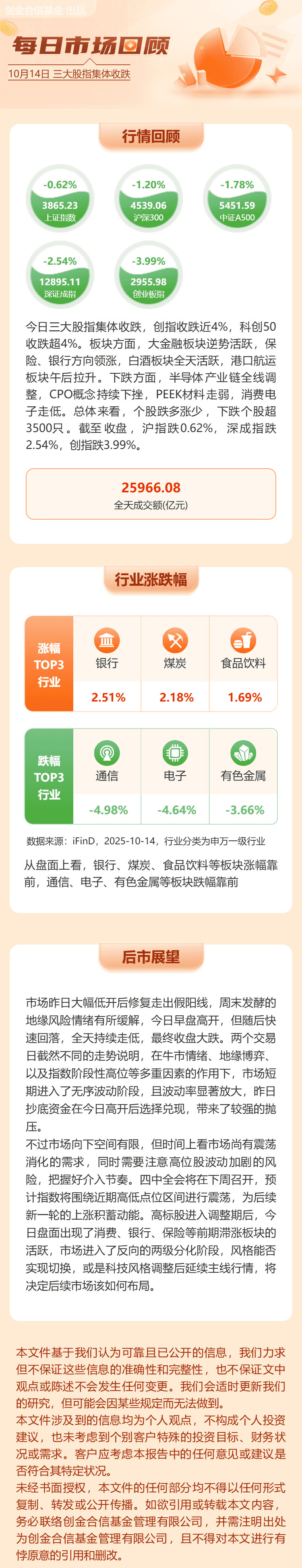 今日市场全天震荡调整,创业板指、科创50指数盘中双双跌超4%。截至收盘,沪指跌0.62%,深成指跌2.54%,创业板指跌3.99%。沪深两市成交额2.58万亿,较上一个交易日放量2215亿。