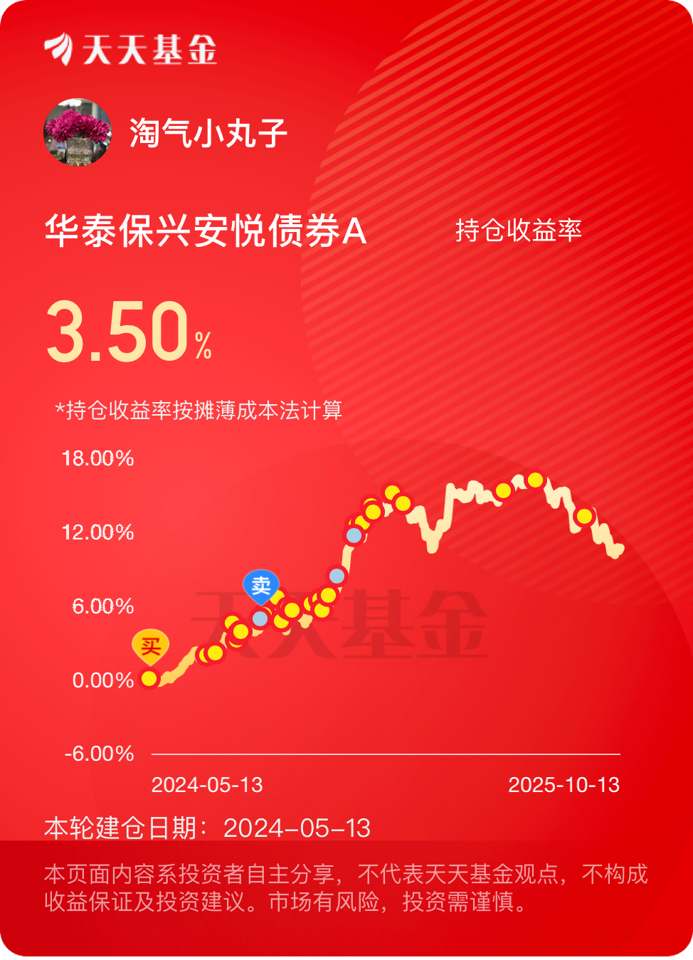 债市大趋势还是向上的,继续拿住华子吧,慢慢攒蛋$华泰保兴安悦债券A$