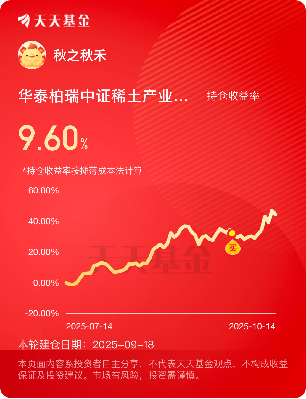 这收益太强了,$华泰柏瑞中证稀土产业ETF发起式联接C$近三个月44.55%,近