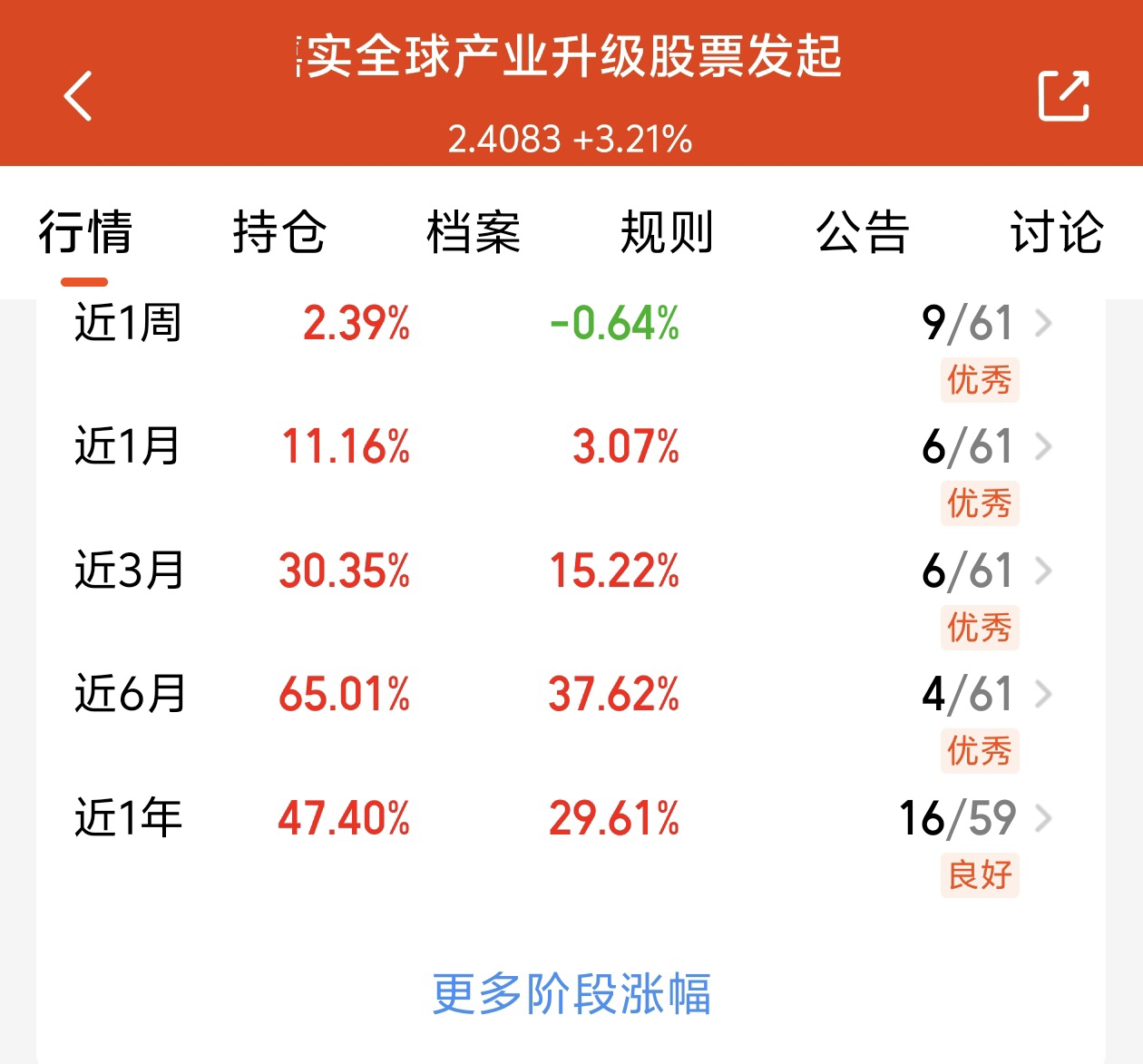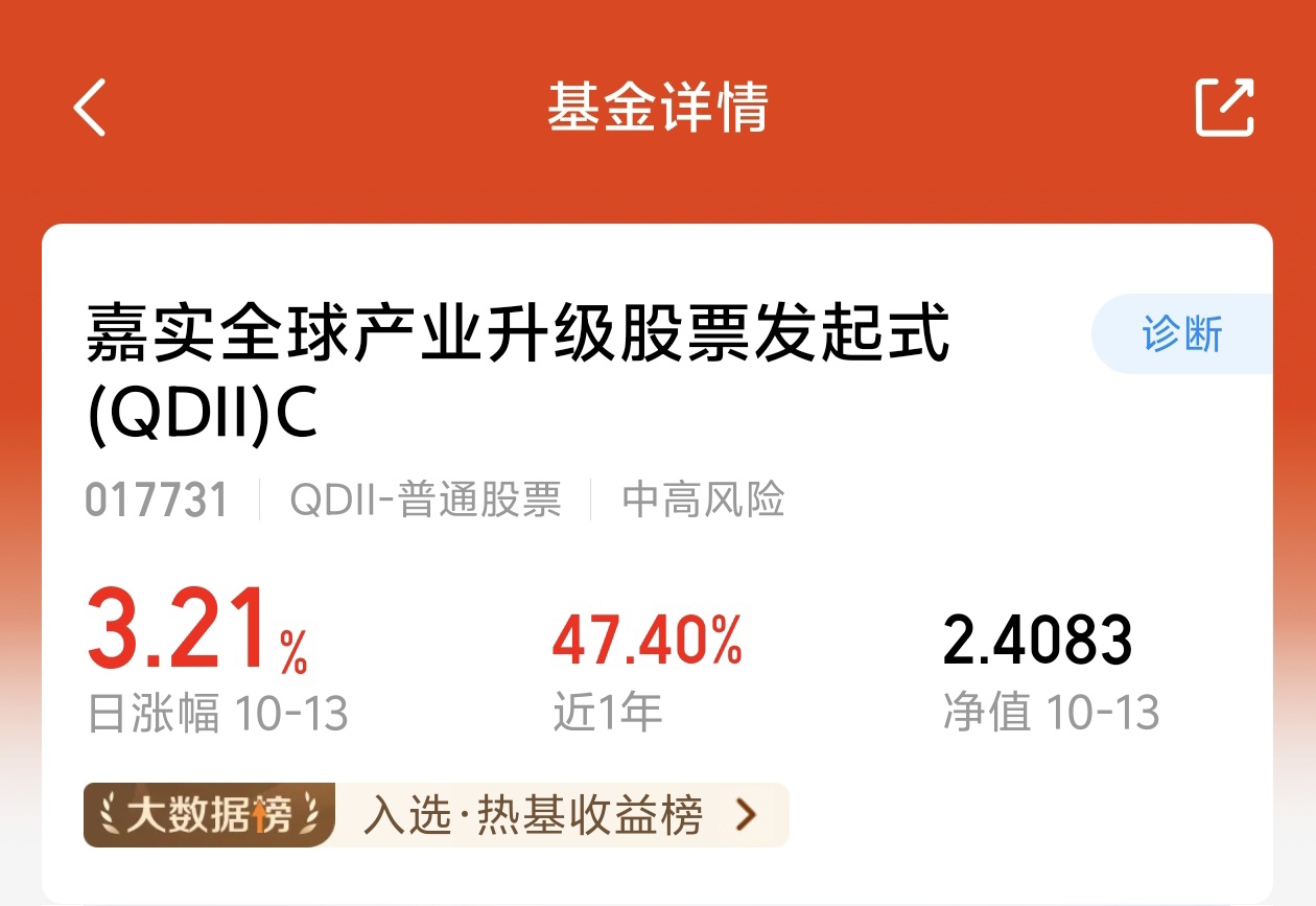 太棒了呀,宝子们,最近行情也是非常的不错,一路上涨,收益率高。$嘉实全球产业升级