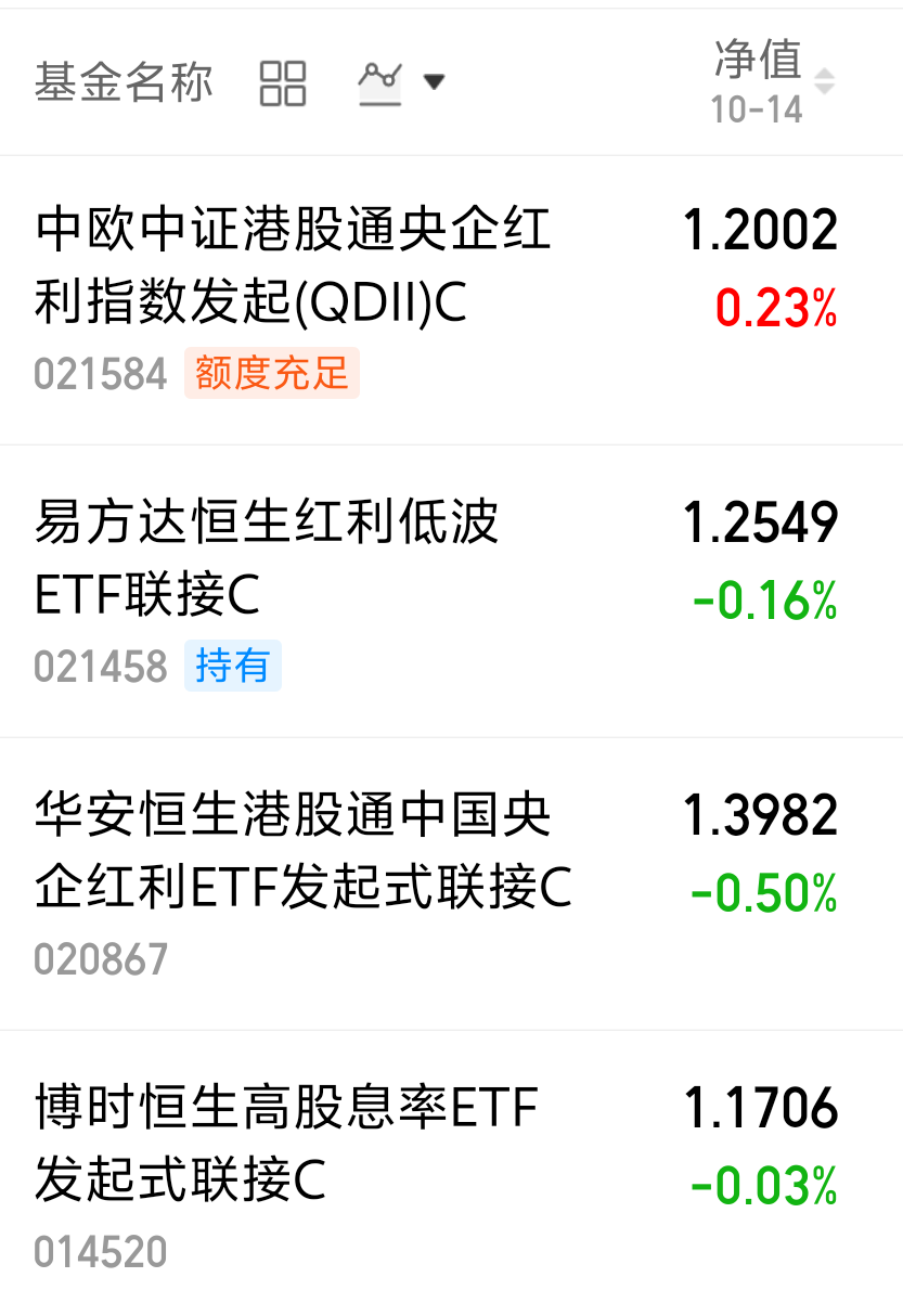 $中欧中证港股通央企红利指数发起(QDII)C(OTCFUND|021584)$今天涨了0.23%