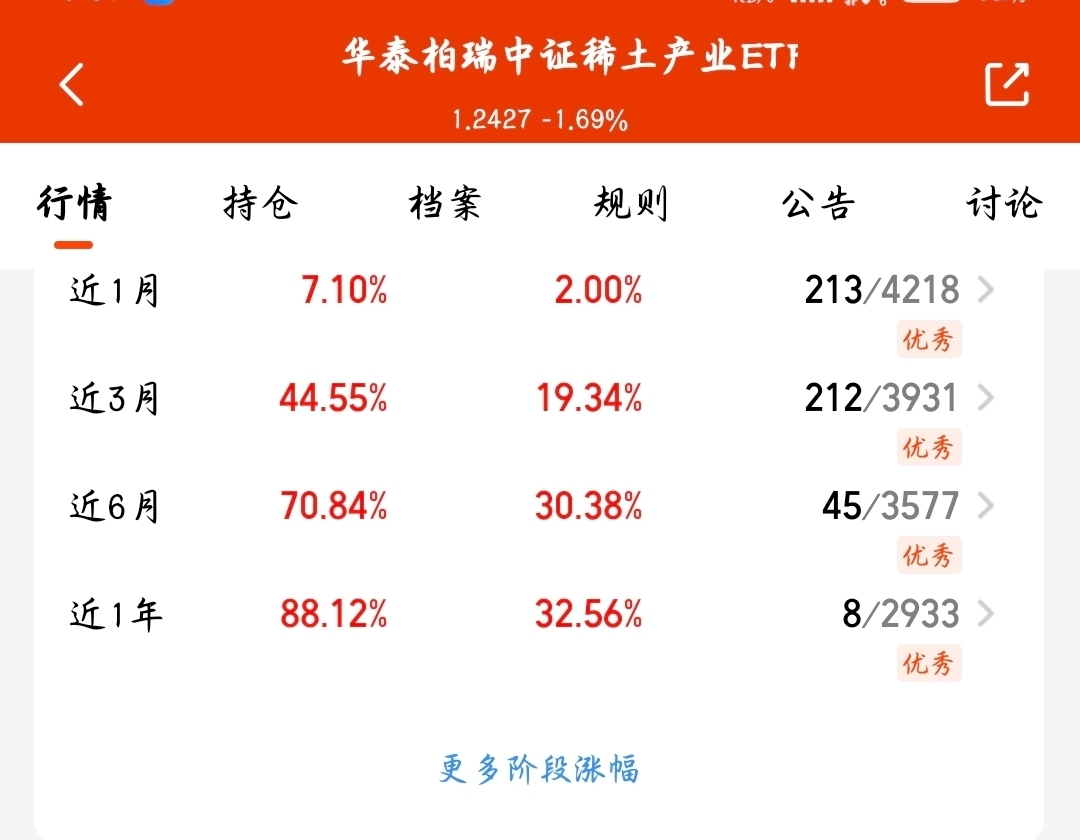 稀土板块强势,华泰中证稀土近一年88.12%,近三个月44.55%。反制逻辑持续验证,调整就是机会。