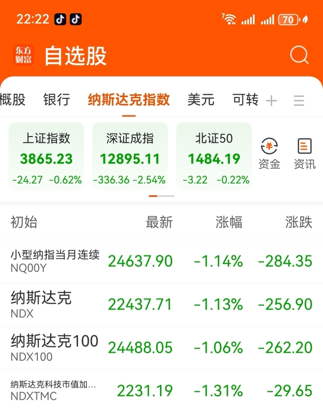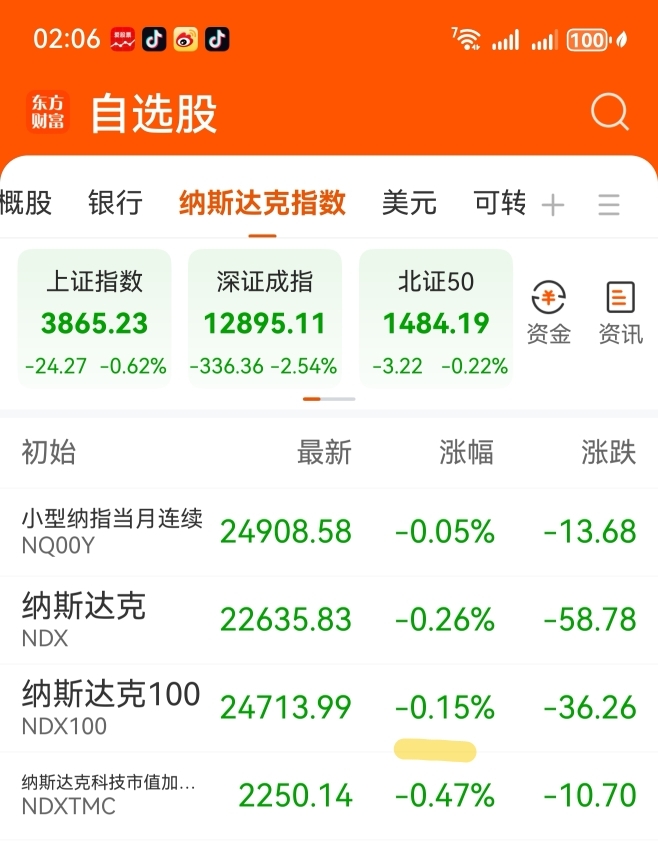 在今天凌晨两点之后,半夜起去上厕所的时候,顺便观察一下美股纳斯达克100指数表现