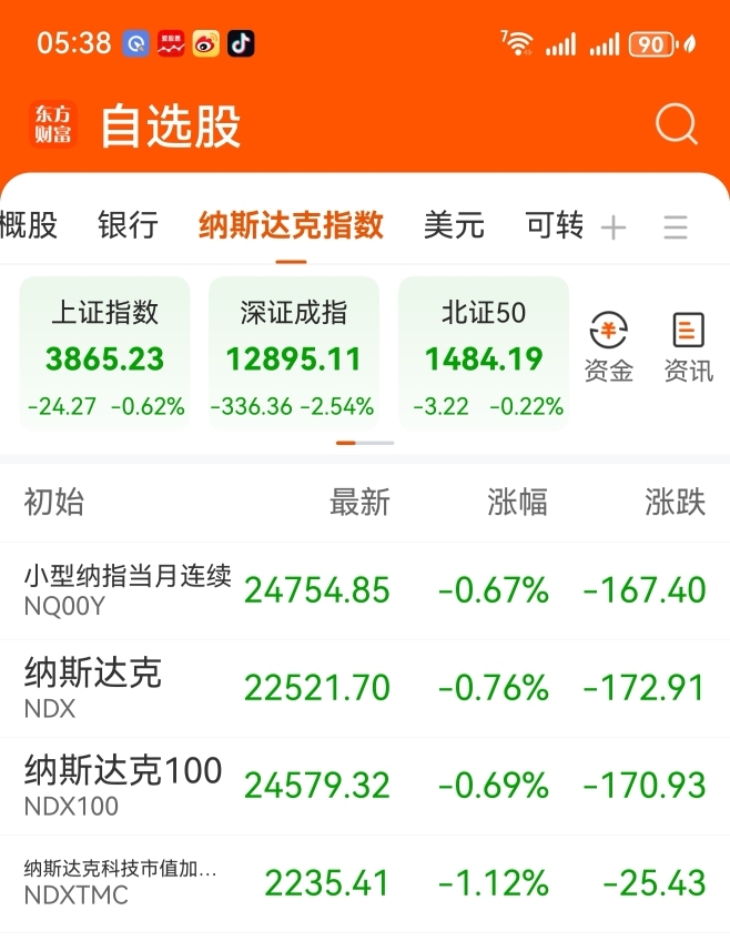 在今天早上五点半之后,观察美股纳斯达克指数、纳斯达克100指数,在3点8分之后,