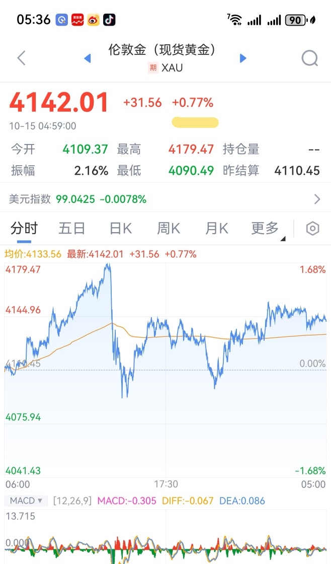 在今天早上,观察现货黄金在昨天收盘是涨+0.77%。观察汇率,在昨天是涨+0.0