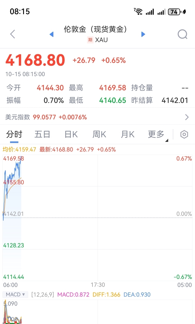 在今天上午8点15分,目前观察现货黄金是涨+0.65%再加上在今天早上,观察现货
