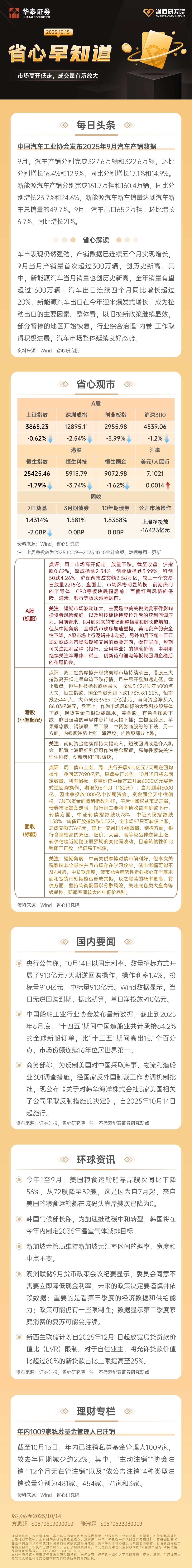 1015省心早知道——市场高开低走,成交量有所放大