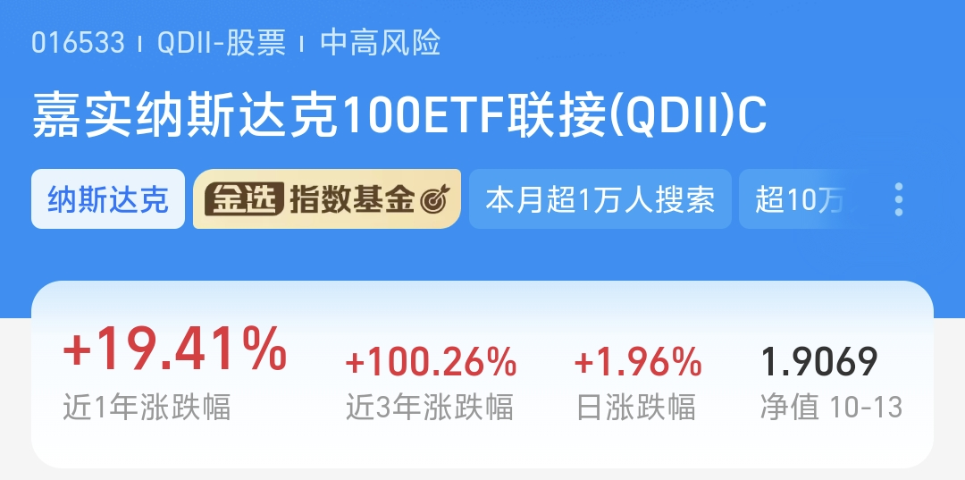偶然间了解到$嘉实纳斯达克100ETF发起联接(QDII)C人民币$ ,一下子觉得省心不少。不用费劲儿去挑具体哪家公司,也不用纠结海外市场的复杂玩法,买它就能跟着这些优质企业一起成长。看着这些公司不断搞出新技术,心里也觉得这份参与挺值的。