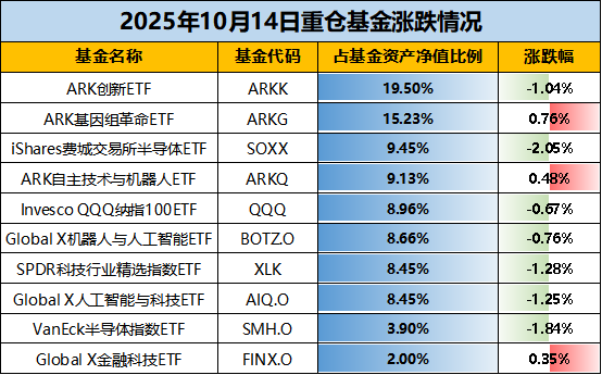【重仓涨跌】根据基金2025年二季报披露,重仓基金中3只为“木头姐”凯茜伍德旗下聚焦于美股前沿科技的基金,合计占比达43.86%。