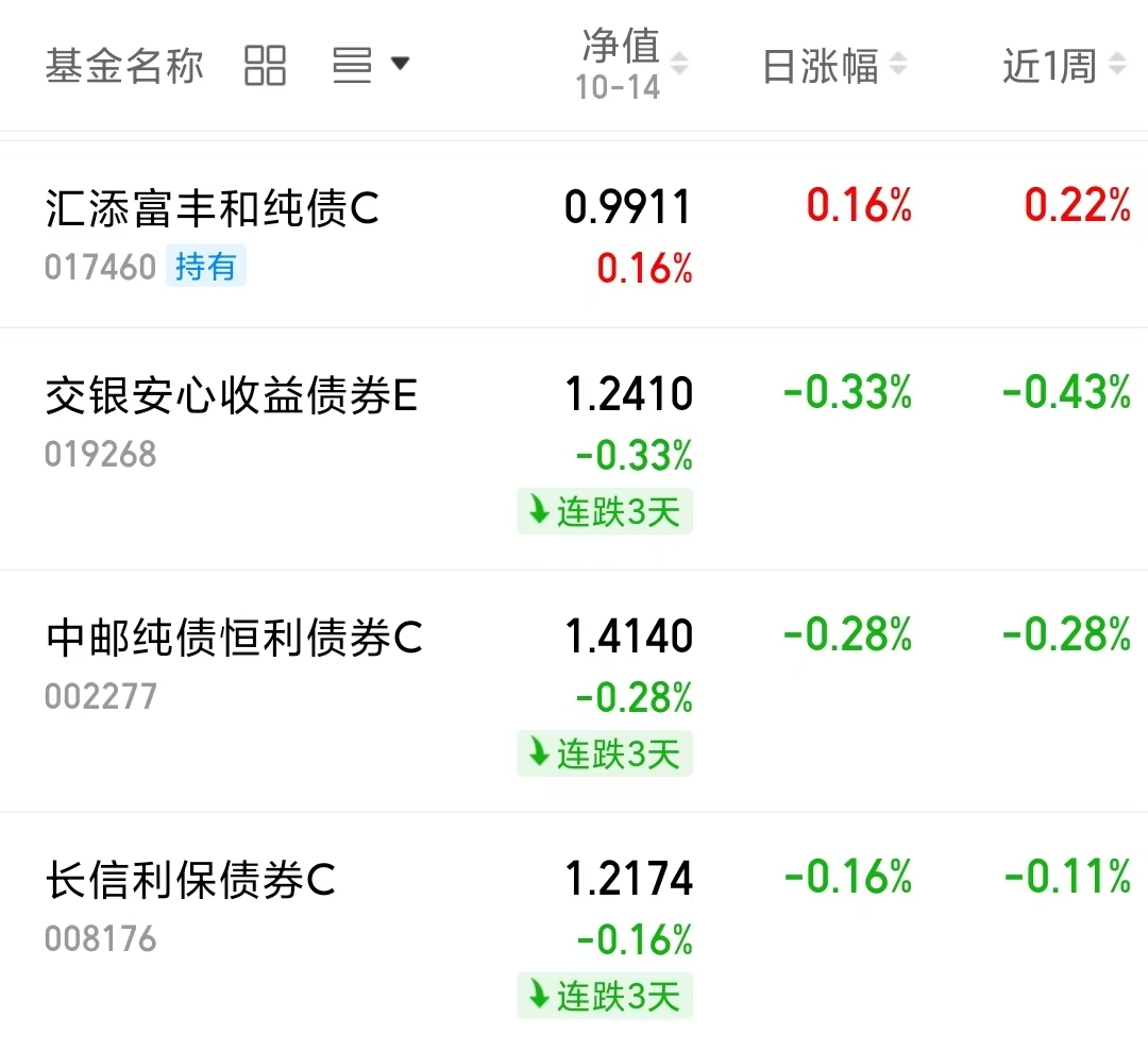 最近行情震荡感觉还是稳健配置比较香呀~我看债昨天收蛋还是蛮不错的,咱就说10月是不是要稳住呢~我看$汇添富丰和纯债C(OTCFUND|017460)$昨天收涨16个蛋,这一波反弹属实爱了~