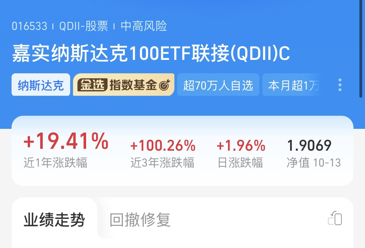 最近美股震荡,迎来布局机会呀,这支$嘉实纳斯达克100ETF联接(QDII)C$