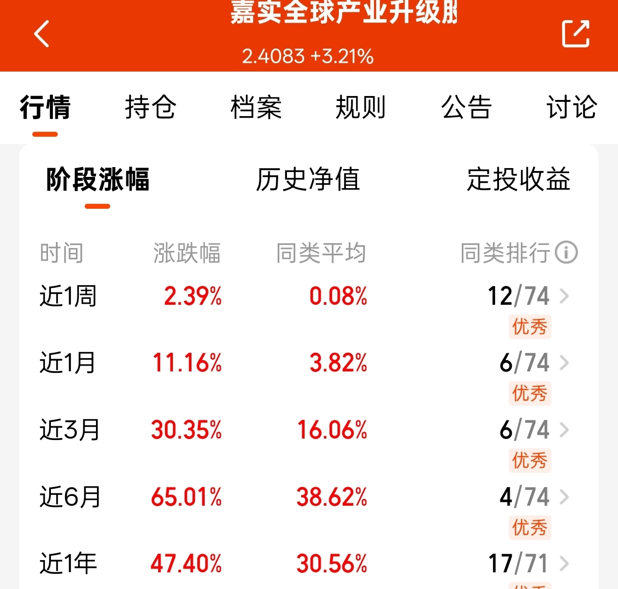 全球市场处于震荡回调阶段,我看好科技的潜力,计划继续分批布局。嘉实全球产业升级股票(QDII)C 可参与全球资产配置,打破单一市场限制。持仓里,英伟达、微软等优质企业在列前十大重仓,覆盖科技软硬件全产业链,核心聚焦产业升级,近一年收益41.95%、同类排名靠前,期待它之后的表现。