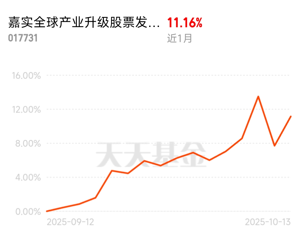近期,美联储加息路径的不确定性及地缘政治风险升温,导致全球投资者风险偏好下降。美股科技股、新能源等成长板块首当其冲,纳斯达克指数单日跌幅超2%,带动全球权益类资产估值承压。嘉实全球产业升级C作为聚焦全球产业升级主题的主动管理型基金,其持仓结构以科技、高端制造、新能源等成长性行业为主,因此短期净值波动与美股回调呈现高度相关性。