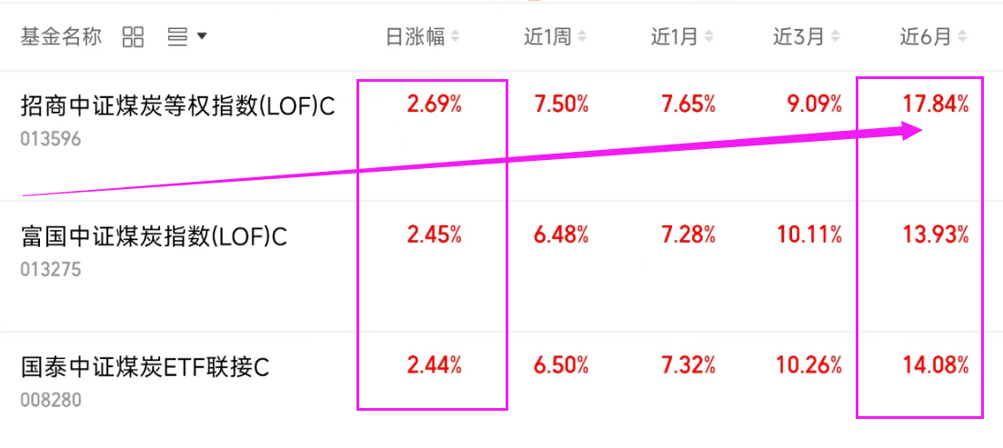 $招商中证煤炭等权指数(LOF)C(OTCFUND|013596)$昨天+2.69%,涨幅居前,并创近一年新高,近六个月+17.84%,远超同类好几个点,赚钱能力更强