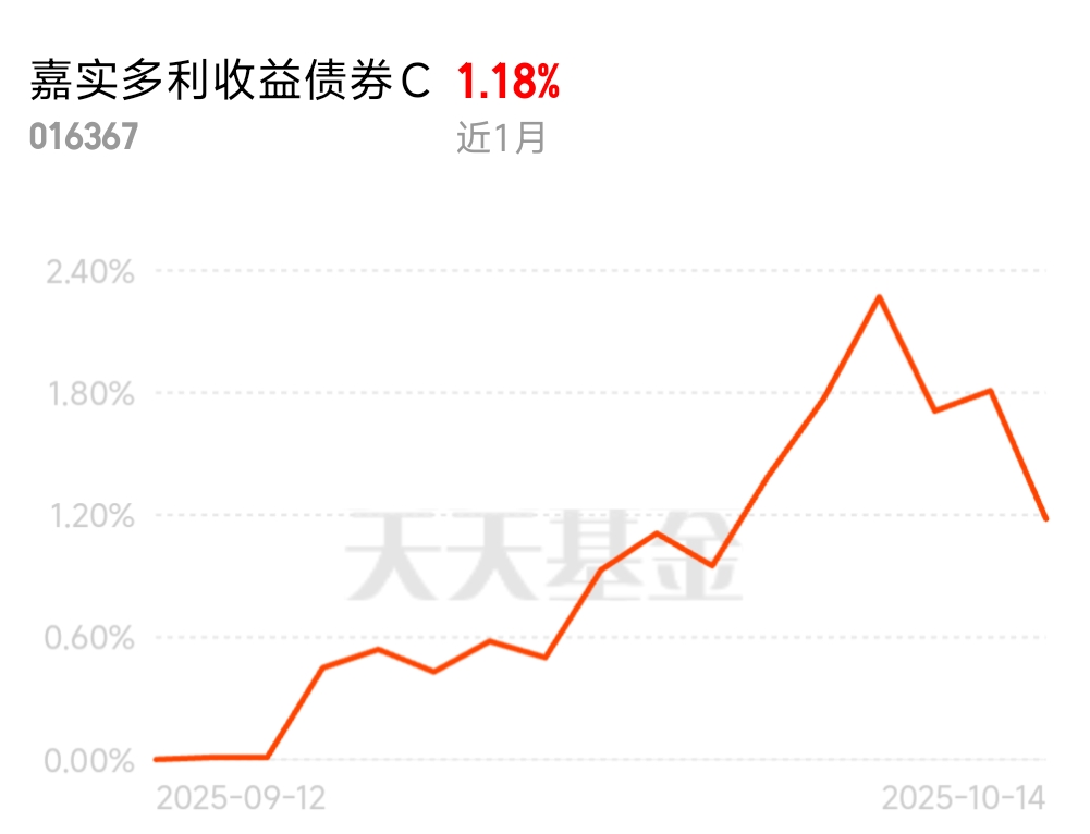 #黄金逼近4200美元!美银:明年5000# 今天债市又是大阴天,不过还好权益市场翻红了,现在这市场行情,想稳又不想只拿债基,固收+确实是个好选择。嘉实多利就很对胃口,债券打底保基本盘,再灵活抓点权益机会增厚收益,波动比纯股基小多了,年化收益超15%,趁着最近盘面震荡,准备大额上车,把闲钱放这儿,不用担惊受怕,等着慢慢涨就行。$嘉实多利收益债券C$