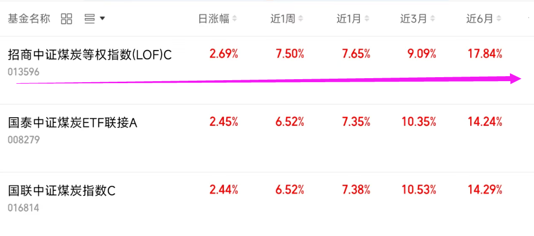 $招商中证煤炭等权指数(LOF)C(OTCFUND|013596)$昨天+2.69%,涨幅领先,近六个+17.84%,远超同类好几个点,表现不错