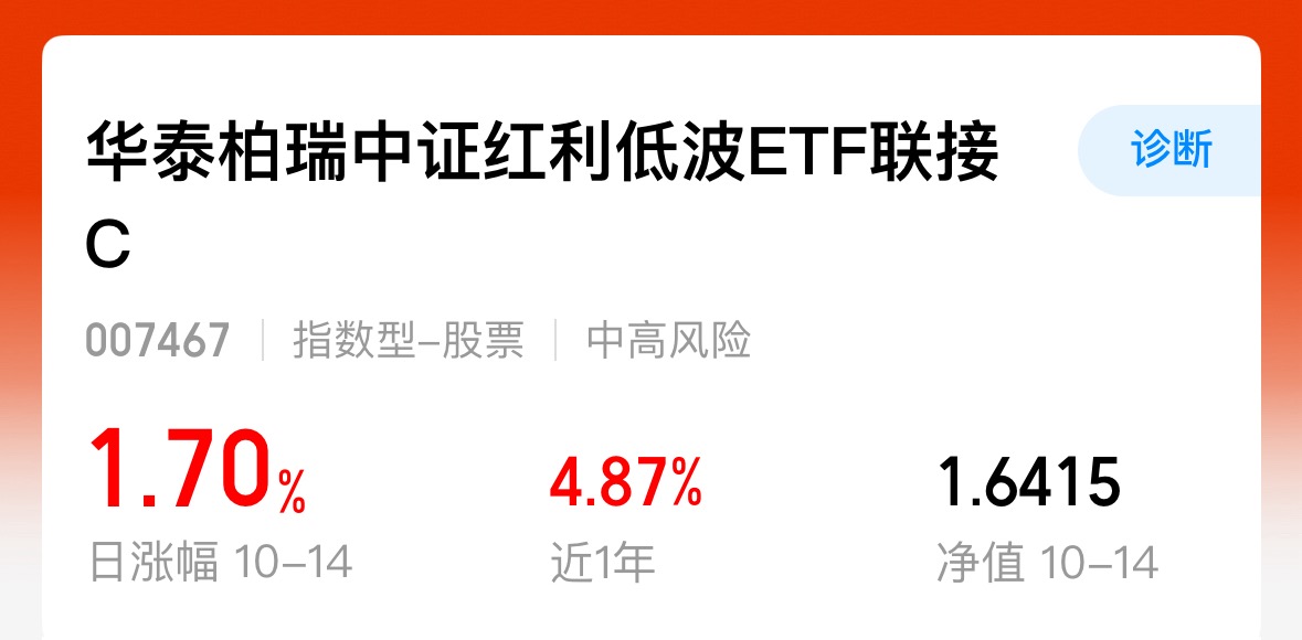 听理财课老师说红利策略适合当下市场,买了华泰中证红利果然灵验!$华泰柏瑞中证红利低波ETF联接C$ 连涨5天今天再涨0.20%,理论结合实际了属于是。