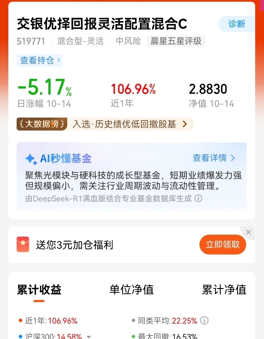 交银优择回报C调整别怕,它一直挺抗波动的,安心拿着就好。
