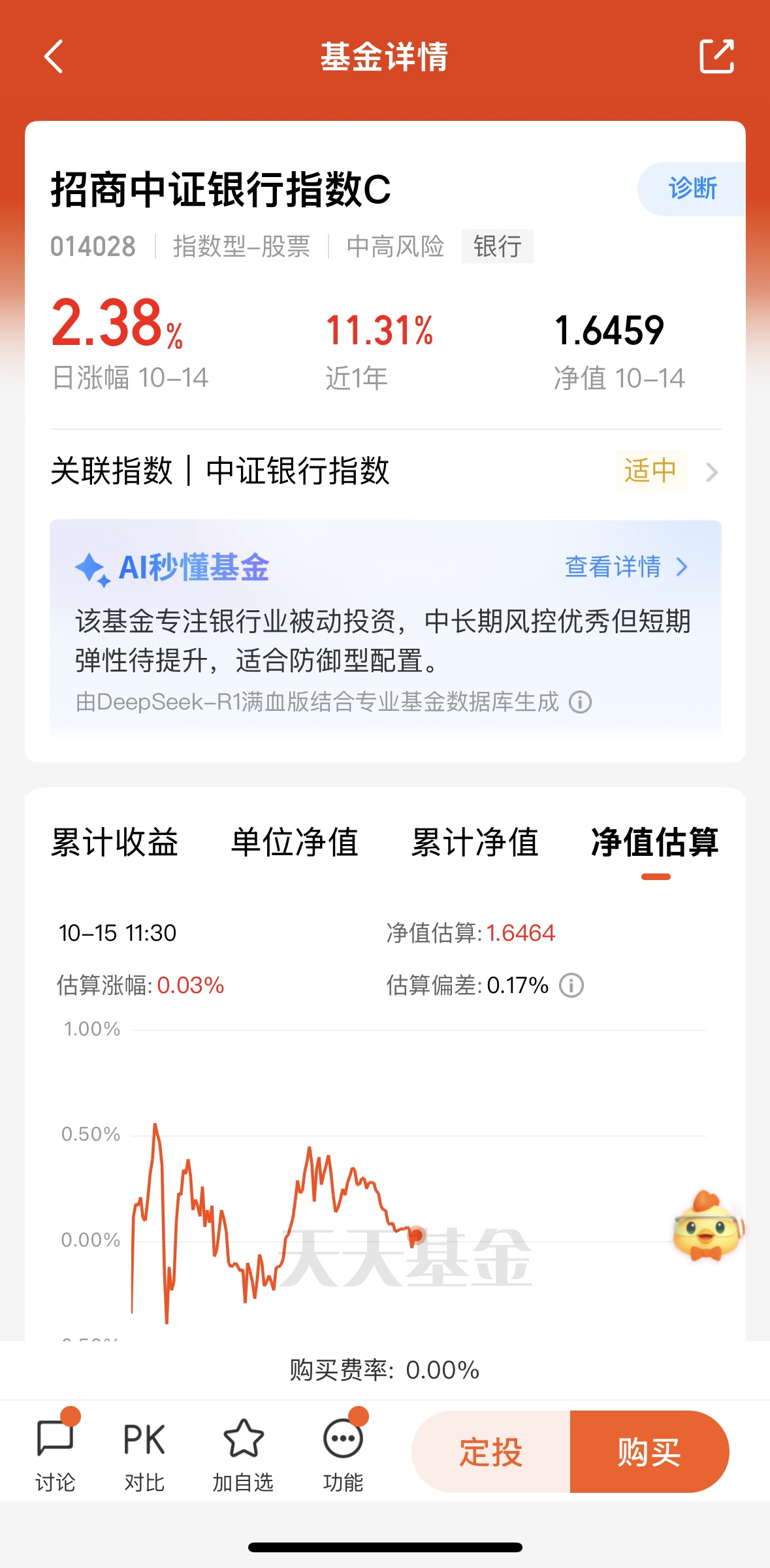 昨天$招商中证银行指数C(OTCFUND|014028)$大涨2.38%,在经历了充分的调整后,开始上行修复,核心资产就在关键时刻出来护盘。下载小红0.03%,继续看好红利资产发力。主要现在这个局面还是比较复杂的,中美谈判没有明确的结果,还在互相博弈,不确定的行情下,我认为可以缓一缓先观望,反而前面调整充分的价值赛道,值得一看。