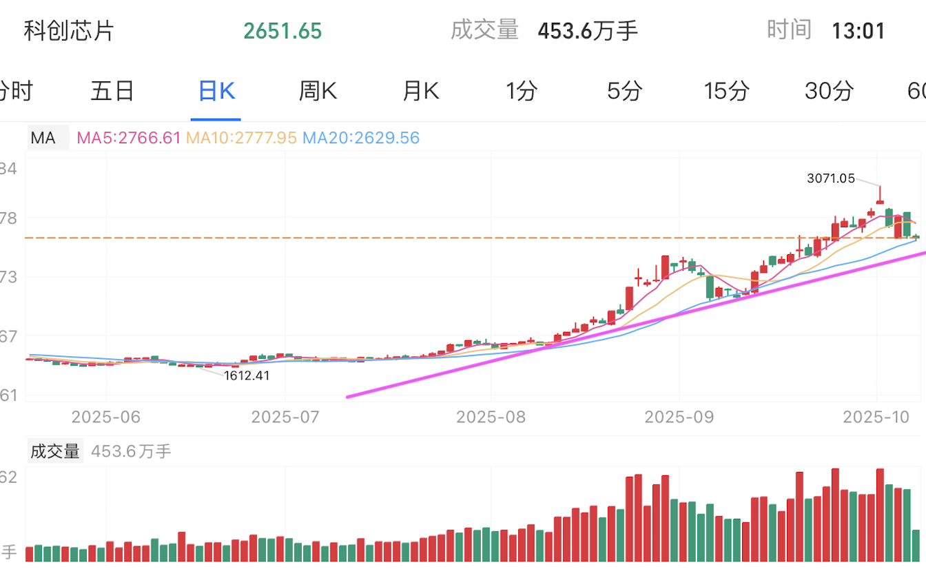 科创芯片近期开启上升行情,最近力竭回调,跌破短期上涨趋势线,逐渐靠近中长期上涨趋势线,能否守住支撑决定后市走向。