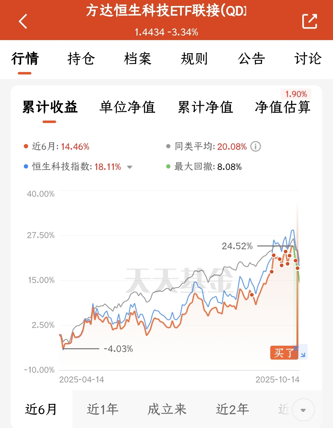 最近股市震荡,在经历多日调整后,港股科技板块今日迎来反弹。从中长期来看,港股科技板块估值仍显著低于A股和美股,具备较高的投资性价比,具有补涨机会。短期资金逆势加仓迹象明显,当前低位或为布局良机。今天继续加仓$易方达恒生科技ETF联接(QDII)C(OTCFUND|013309)$,虽然有波动,但是整体趋势,还是向上的。