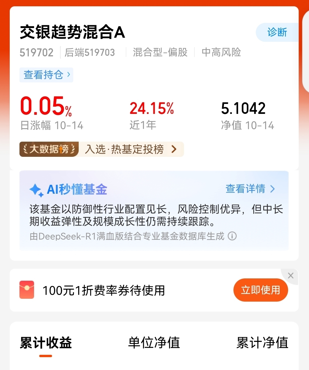 我在选择了“加仓,顺势而为”交银趋势A经历过调整,每次都能回来,现在波动,安心拿