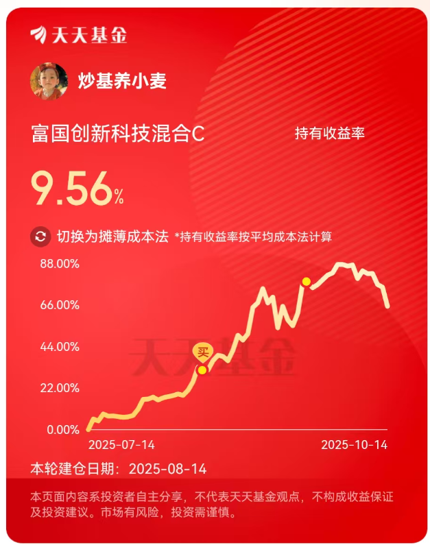 所以今天A股科技情绪也不高,麦爸看了看之前加仓过的$富国创新科技混合C(OTCFUND|011120)$,这只基主要投的就是 AI 算力,像光模块、服务器 PCB 这些,还有半导体这类硬科技,跟海外算力关联特别大。昨晚美股科技股这么一跌,今天它肯定受拖累。好在咱A股还算给力,今天虽然成交量缩了,有点震荡,但上涨的股票比下跌的多,整体稳得住。