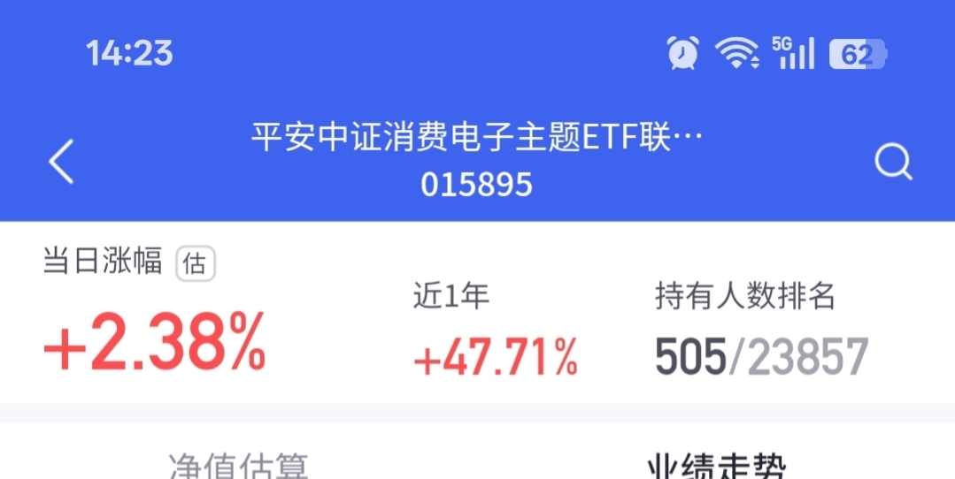 我的乖乖。总算今天等到了消费电子板块回暖了。昨天都说了急跌之后肯定就有修复行情这不就来了吗?$平安中证消费电子主题ETF联接C$ 今天午后发力上涨了2.38%。表现还可以,期待明天还能持续呀