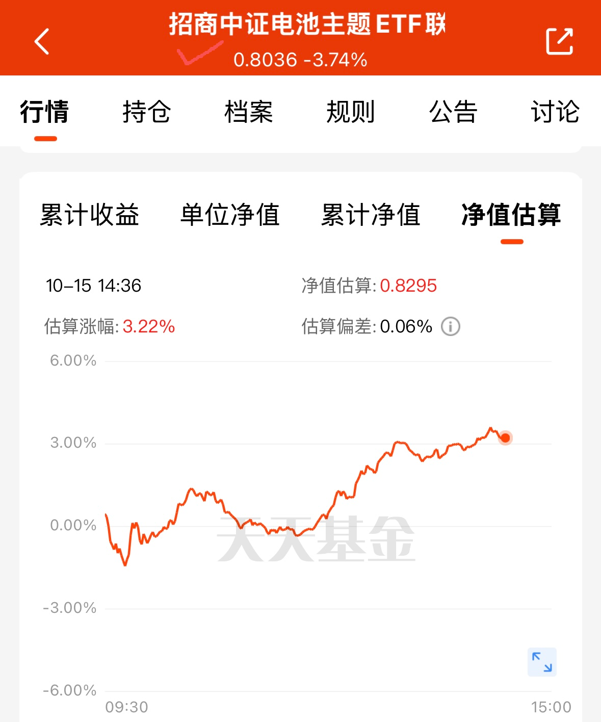 电池一路火花带闪电的拉升!$招商中证电池主题ETF联接C(OTCFUND|016020)$估值大涨3.22%,前面跌麻了,回血真爽!但是客观来看,电池行业目前的行业景气度在线,其中储能需求超预期,电池供不应求,现在材料方面散弹价格已经陆续调整了,再加上中国科学院物理研究所联合华科大学等团队开发出阴离子调控技术,新技术越来越成熟,产业化落地持续推进中,继续看好锂电池板块。
