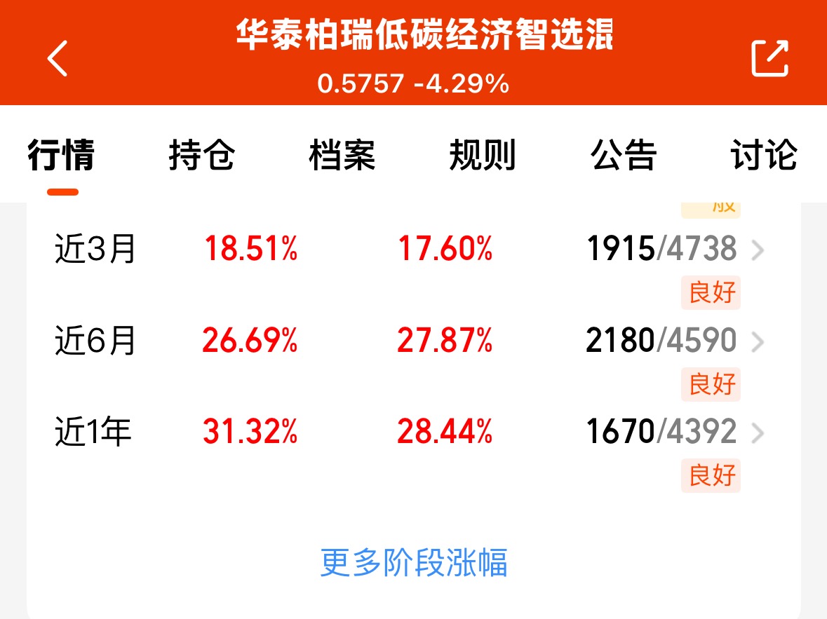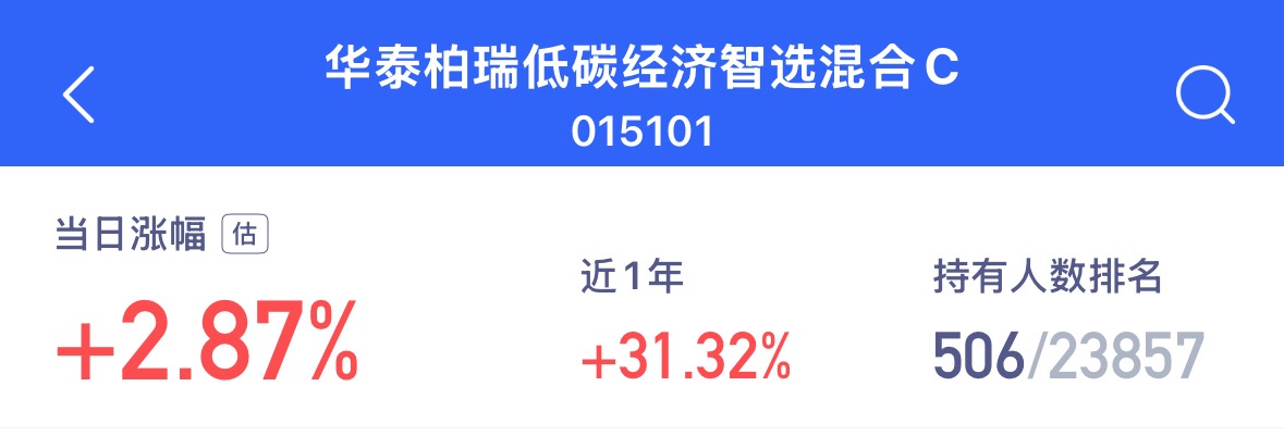 真牛!今天市场机器人最亮眼!我定投的$华泰柏瑞低碳经济智选混合C$今天估值涨了近