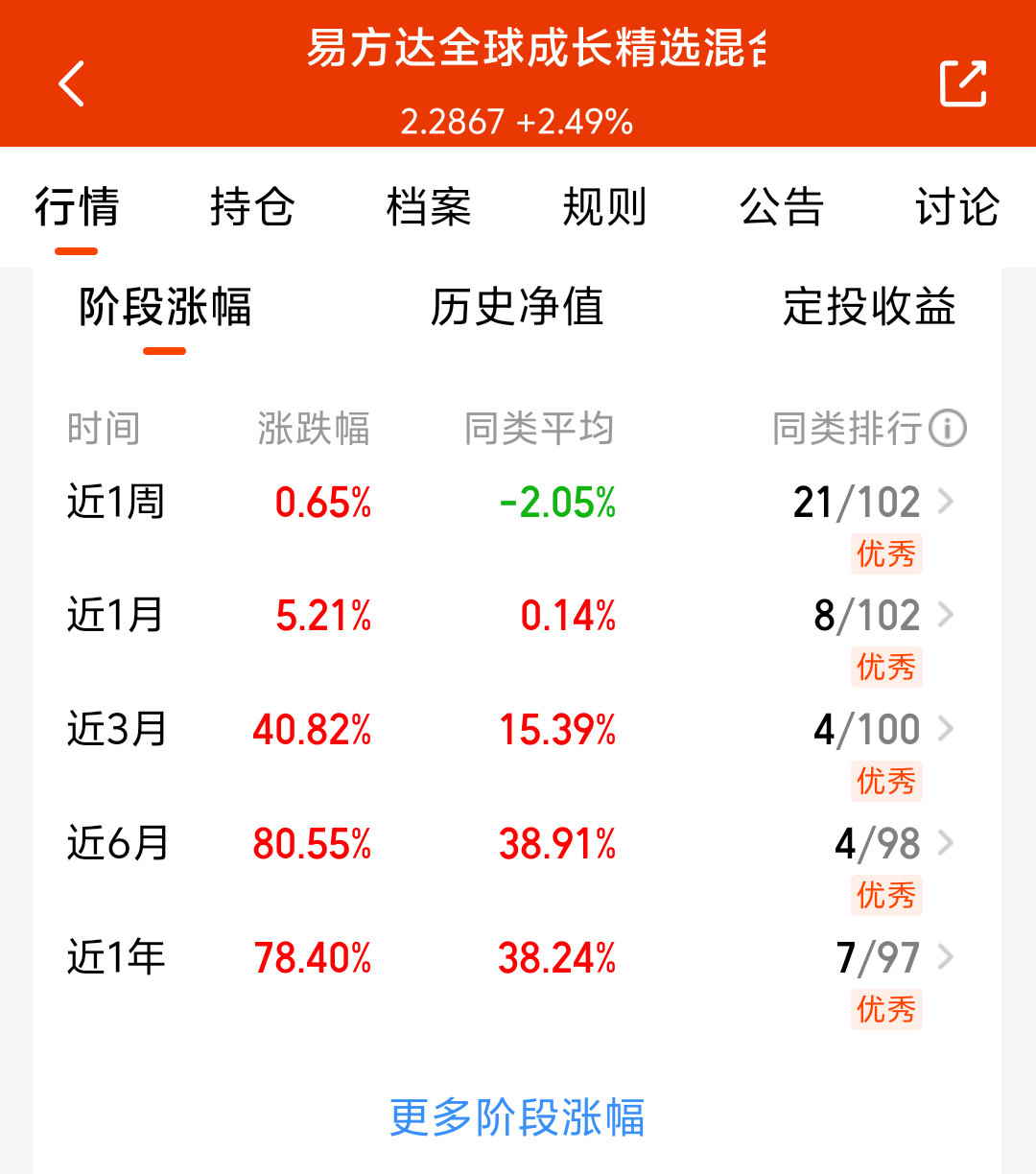 大盘和美股今天表现不错,大科技板块回暖上涨,美股昨夜小幅回调,近期市场波动加剧,全球轮动速度很快,单一市场风险大,我准备分批加仓易方达全球成长精选混合C,持仓可投全球科技板块,美股、A股和港股都能投,灵活享受全球科技成长机遇,近三个月涨了40.82%,近六个月涨了80.55%,经理调仓能力不错,看好这个方向,我准备分批入手!