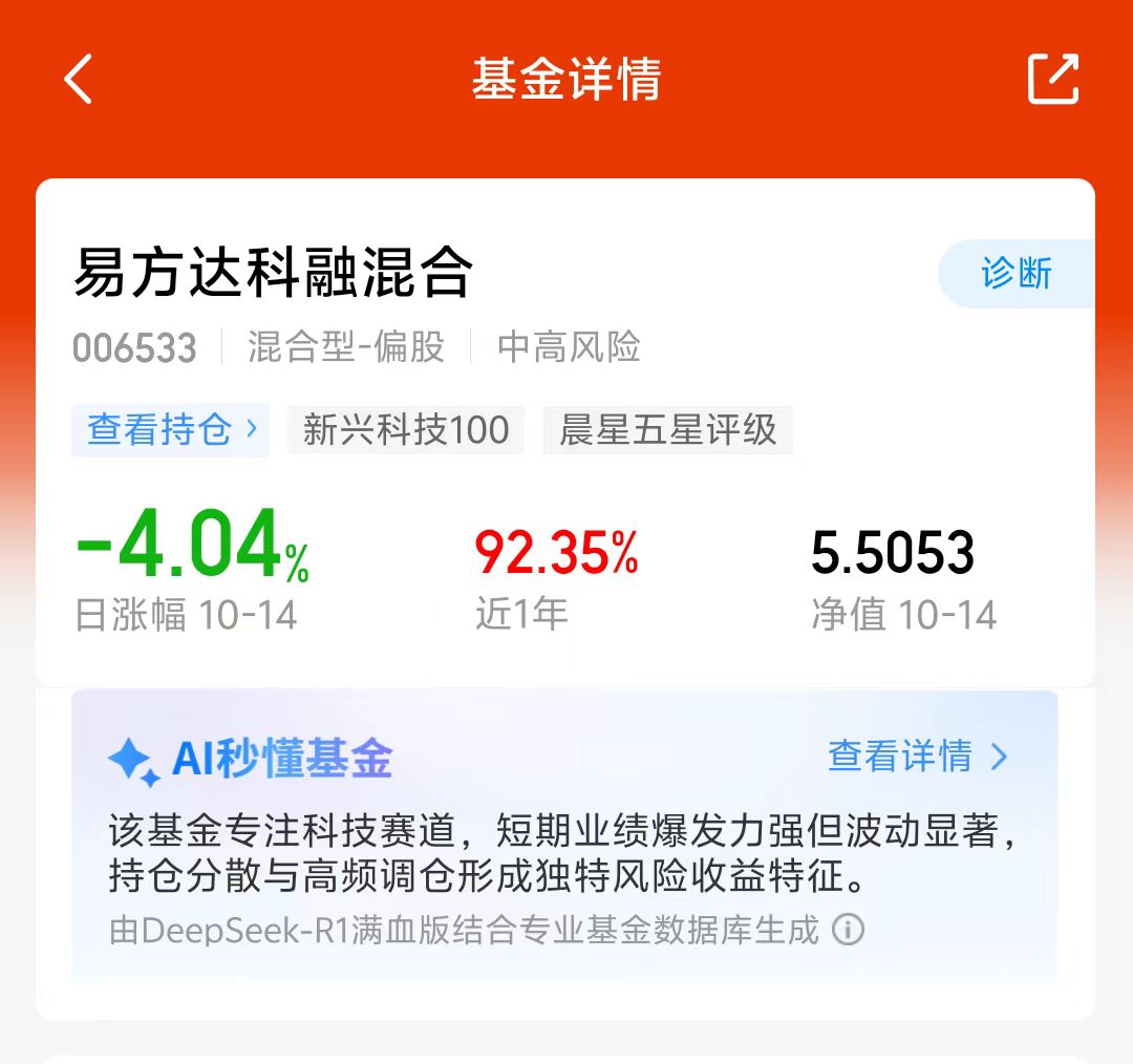 大盘今天回暖上涨,大科技等板块今天涨起来了,成长行情轮动速度比较快,我准备继续分批加仓$易方达科融混合(OTCFUND|006533)$,持仓有科技、新能源和军工等板块,轮动配置,近三个月涨了57.40%,近六个月涨了91.97%,持仓比较均衡一些,可以降低单一赛道回调带来的风险,持仓体验还不错,我准备分批加仓了!