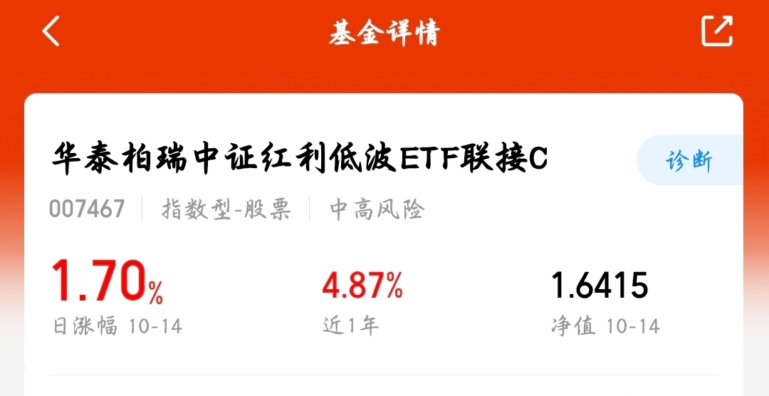 别看华泰中证红利今天只涨0.20%,可人家是连续第五天上涨!在这种行情里,稳稳的