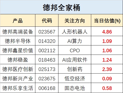 德邦全家桶今日估值来了$德邦鑫星价值灵活配置混合C$ $永赢科技智选混合发起C$ $德邦半导体产业混合发起式C$