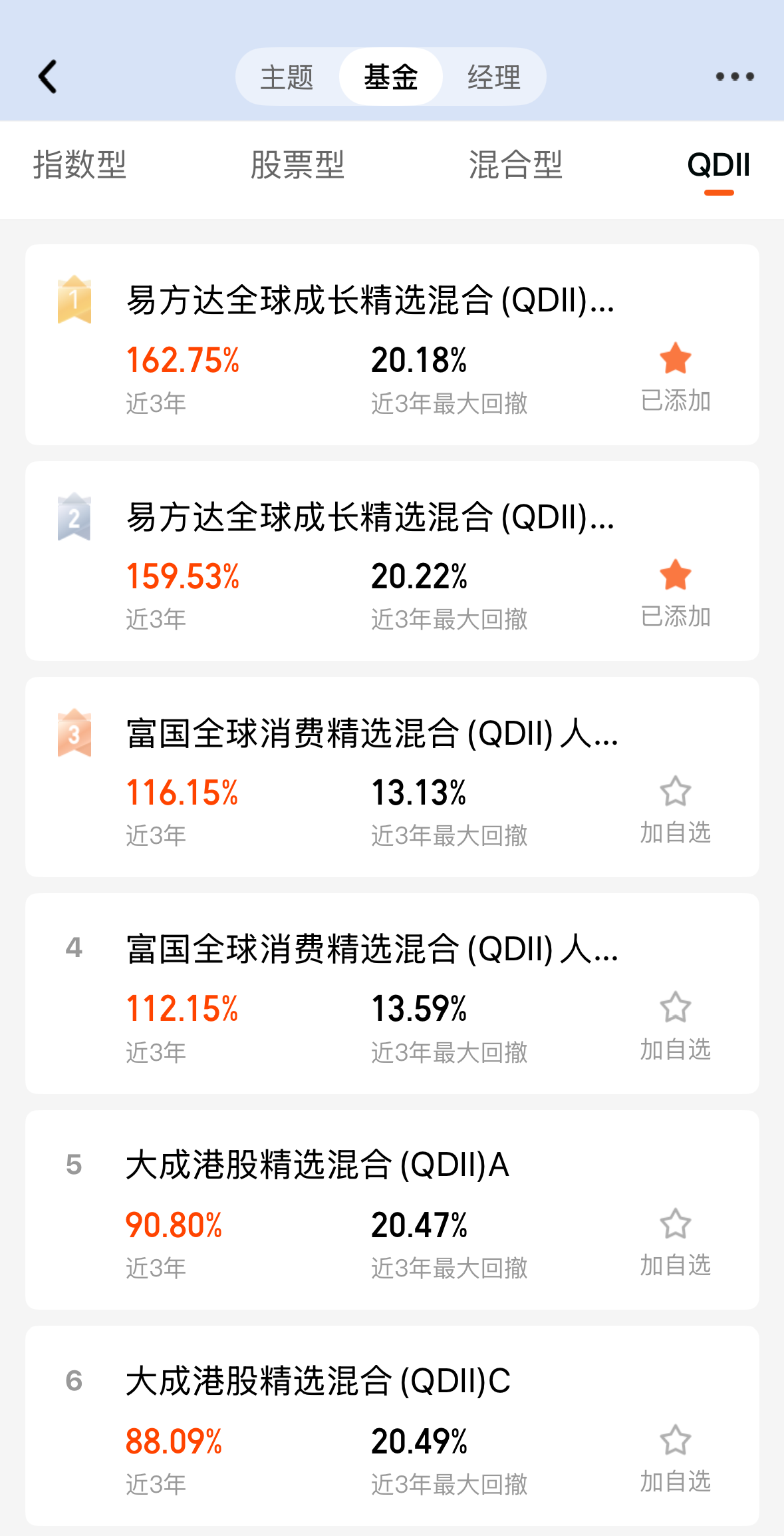 先恭喜各位友友回血了!不过应该包不回来昨天的亏损。港股A股都表现不错,昨天跌的够狠的。现在中美谈判没有明确的结果,还在拉扯中,不确定的因素太多,我认为单吊一个方向还是风险比较大的。$易方达全球成长精选混合(QDII)人民币C(OTCFUND|012922)$全球方向配置,美股A股港股都能投,近三年162.75%,近三年最大回撤20.18%,这个表现相当给力!不得不服经理的调仓能力了!