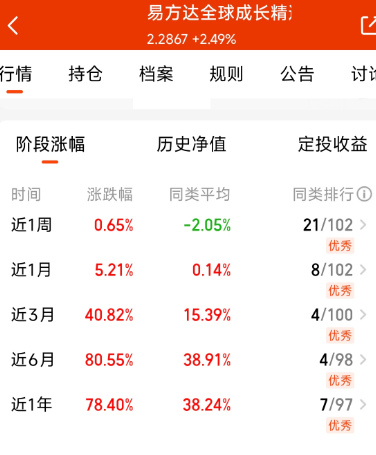 而且A股的科技近期表现不行,倒不如看看易方达全球成长精选(QDII)C(012922)—— 这只全球科技成长 “黑马”!$易方达全球成长精选混合(QDII)人民币C(OTCFUND|012922)$