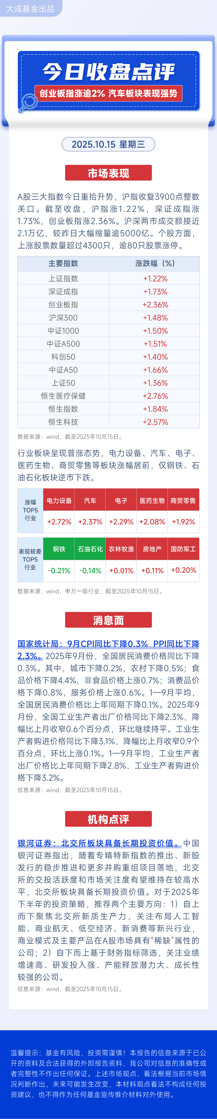 收盘点评:创业板指涨逾2%,汽车板块表现强势
