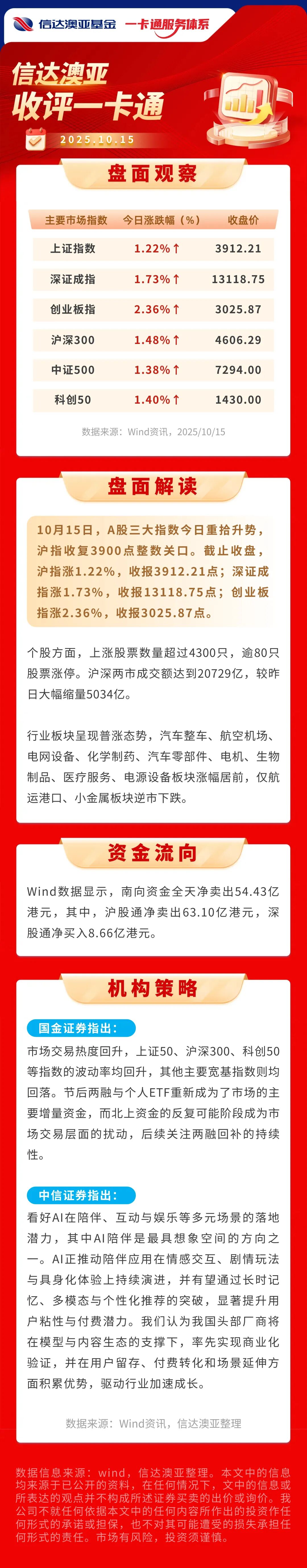 【收盘点评】A股三大指数重拾升势,沪指收复3900点整数关,收报3912.21点