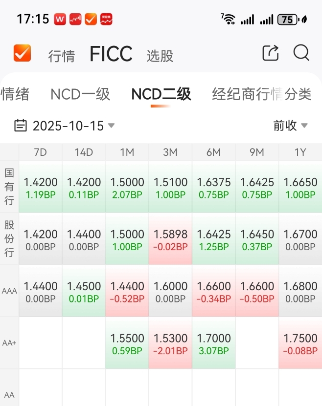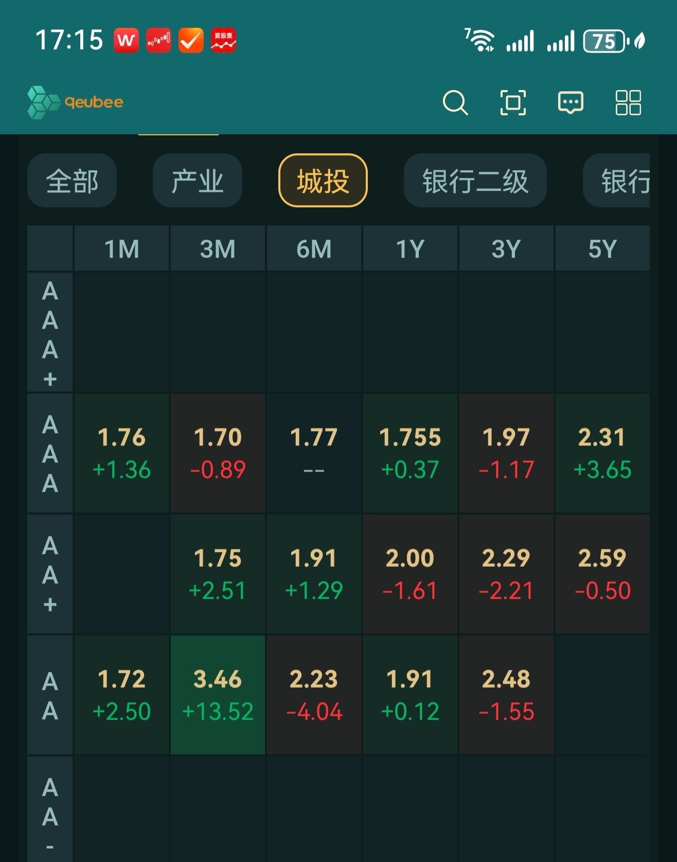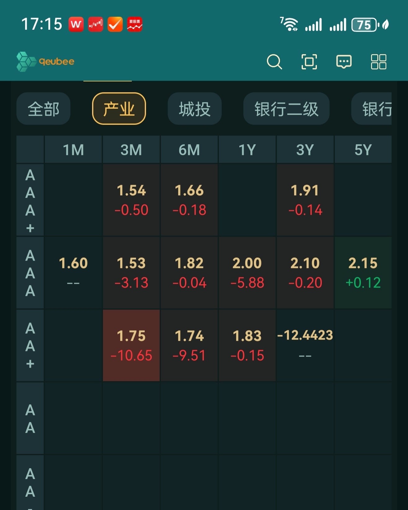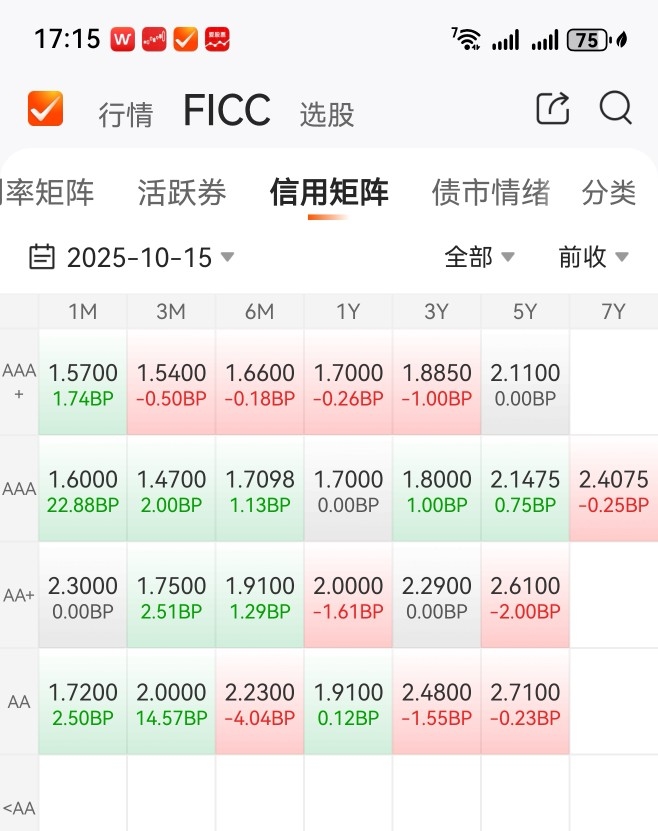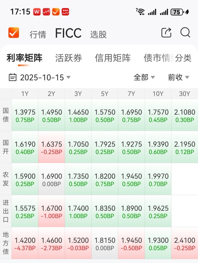 在今天下午17点之后,观察一下今天债行情。红色,是涨。绿色,是跌。