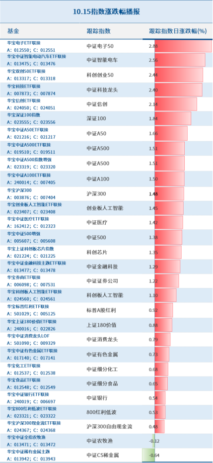 以下是宝儿姐家主要指数基金跟踪指数的涨跌幅情况: