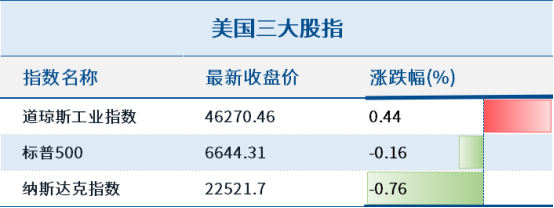 隔夜,美股三大指数收盘涨跌不一。