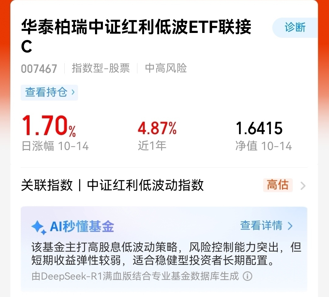 朋友之前推荐了华泰中证红利,我还犹豫呢。结果连涨5天,今天又爬升0.20%,这防