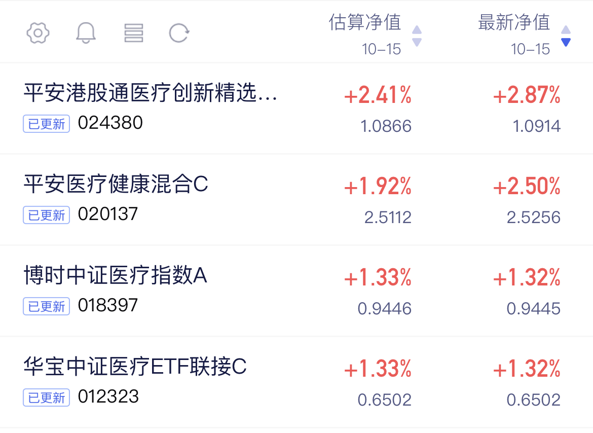 今天大盘行情不错,三大指数集体上涨,港股市场也迎来反弹行情,特别是医疗板块今天表现不错,下面一起来看下最新净值情况: