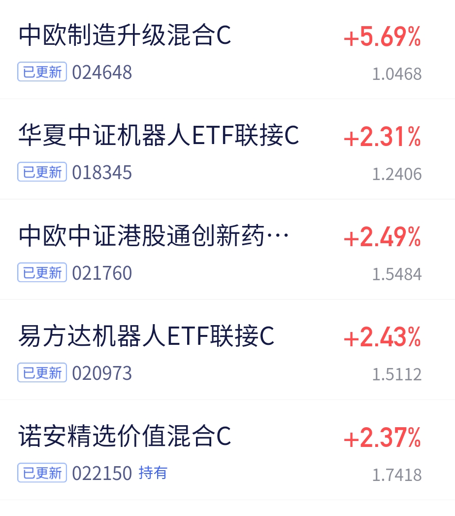 今天市场行情,不得不说真是太幸福给力,经过几天的调整,今天走出了修复行情!期待后市会越来越好$中欧制造升级混合发起C$ 中欧制造升级混合今天表现非常优秀,涨幅5.69%,大肉走起