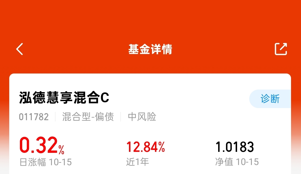 泓德慧享混合C今天创新高啦!属于固收+偏债混合,日涨0.32%,又创佳绩,值得点