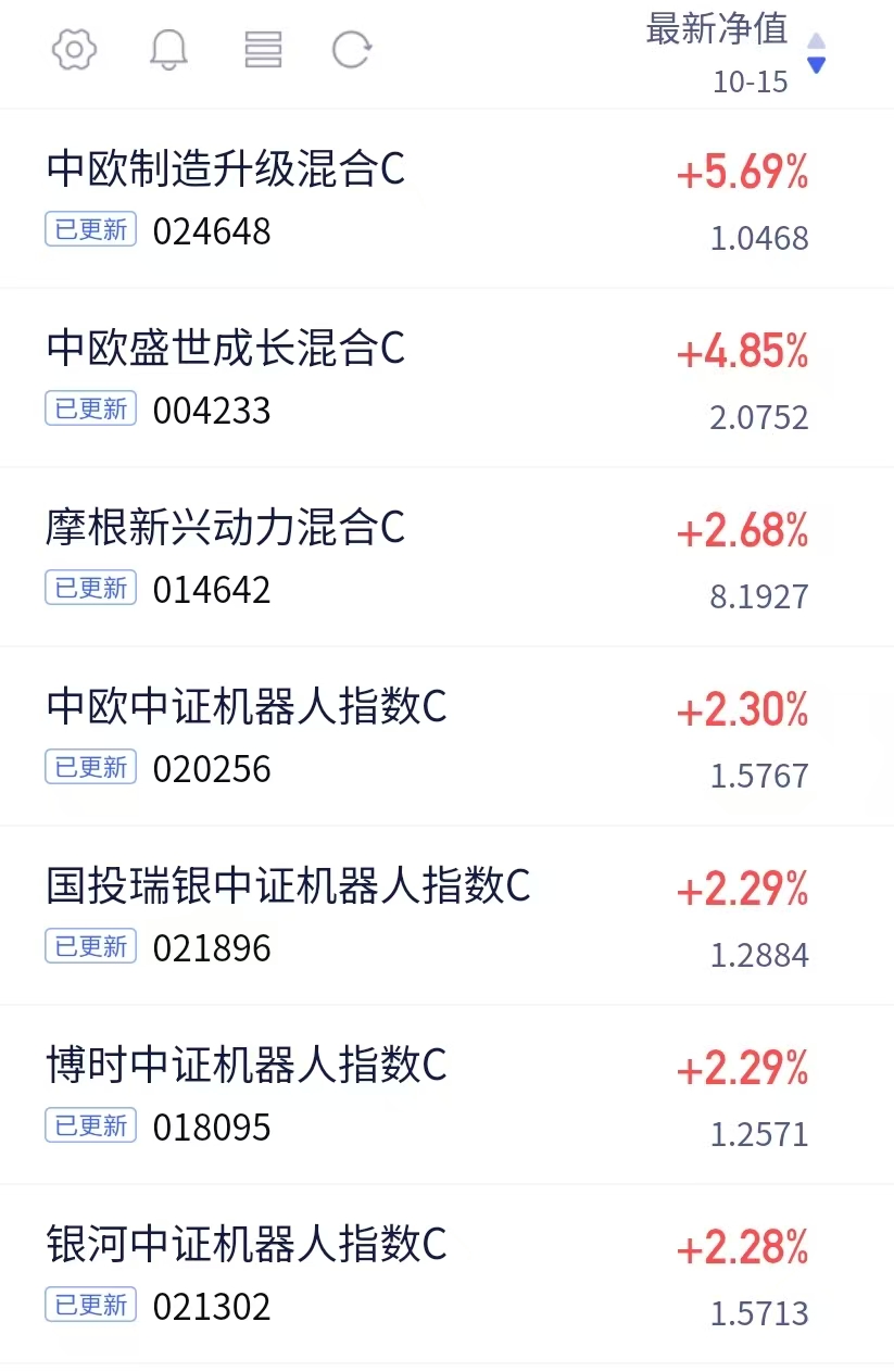 $中欧制造升级混合发起C(OTCFUND|024648)$今天收涨5.69%,主动管理基就是牛啊~今天超额收益太棒了吧,不愧是人形机器人赛道的新大哥~