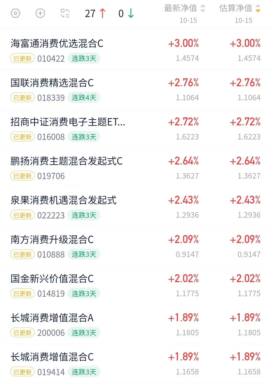 从今天行情来看我感觉还是属于赛道轮动的震荡行情吧~我看今天市场行情消费赛道企稳回暖,感觉四季度还是值得期待的~今天$海富通消费优选混合C(OTCFUND|010422)$收涨3.00%,感觉消费赛道反弹趋势也是很不错。